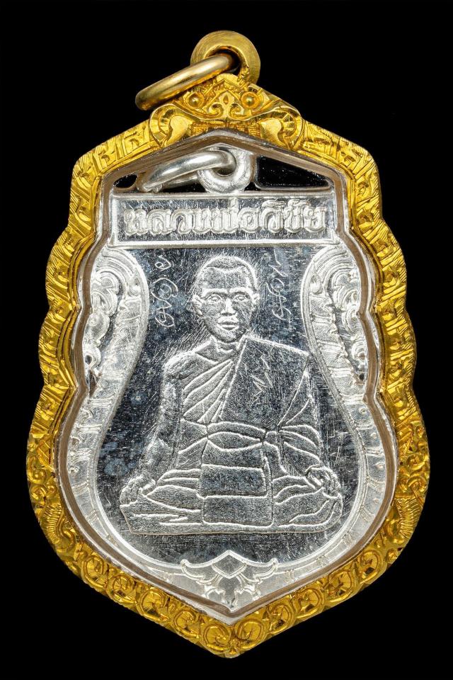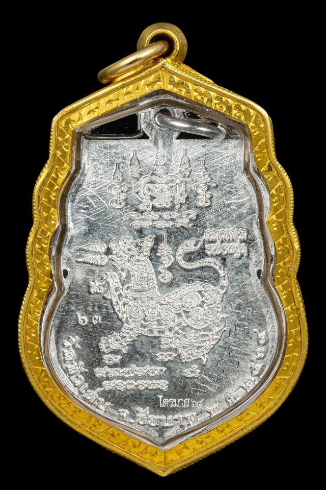 | เหรียญเสมาเนื้อเงินหลังสิงห์นพเก้าขวัญ ไตรมาส64 หลวงพ่อวิชัย วัดหัวเด่น จ.ชัยนาท สร้าง64เหรียญ |