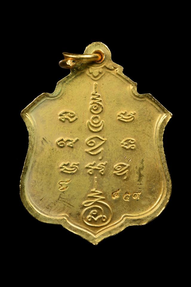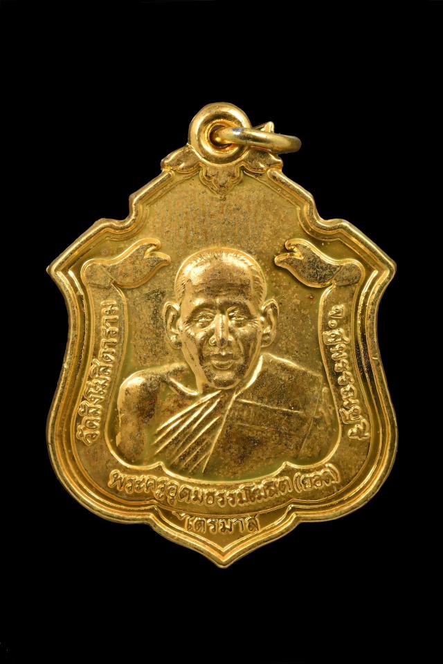 | เหรียญรุ่นไตรมาส เนื้อนวะผิวทอง ตอกเลขนัมเบอร์ No.459 พระครูอุดมธรรมโฆสิต (อาจารย์ยอด) วัดสังโฆ |