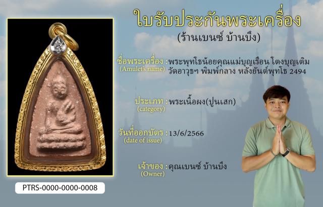 | พระพุทโธน้อย คุณแม่บุญเรือน โตงบุญเติม วัดอาวุธฯ พิมพ์กลาง หลังยันต์พุทโธ 2494 |